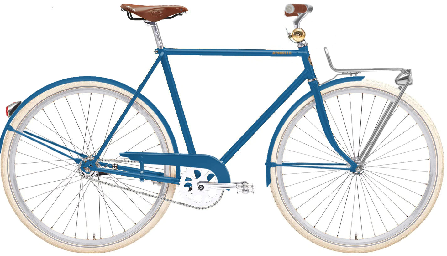 De Achielle Sam is een toffe fiets waarbij je lekker kan doortrappen. Door de retro-stijl is het helemaal een fiets van nu. Je kan hem kaal en minimalistisch aankleden, maar ook met verlichting, spatborden en kettingkast. Veel plezier met samenstellen!